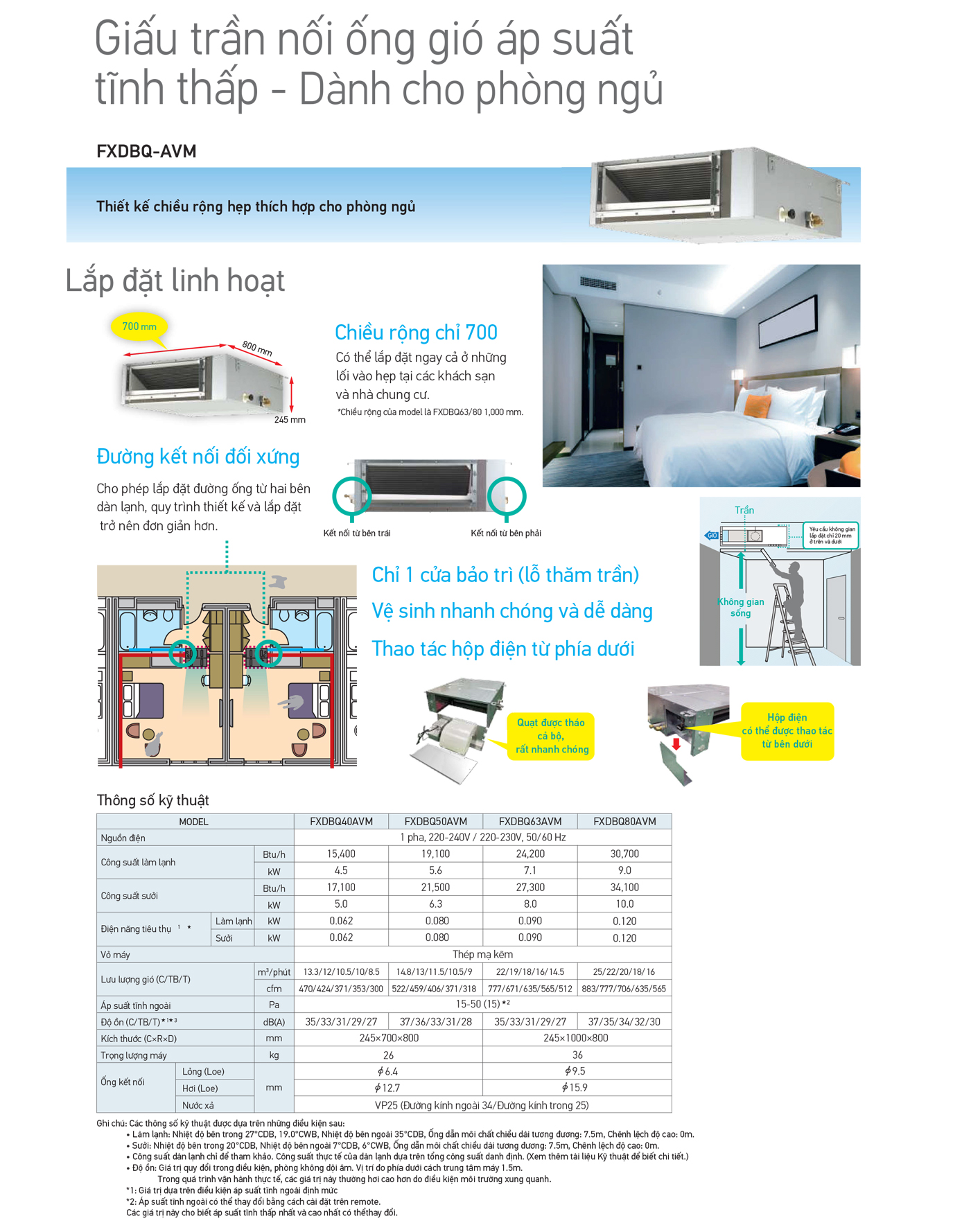 DÀN LẠNH GIẤU TRẦN NỐI ỐNG GIÓ DÀNH CHO PHÒNG NGỦ - FXDBQ-AVM SERIES (ÁP SUẤT TĨNH THẤP)